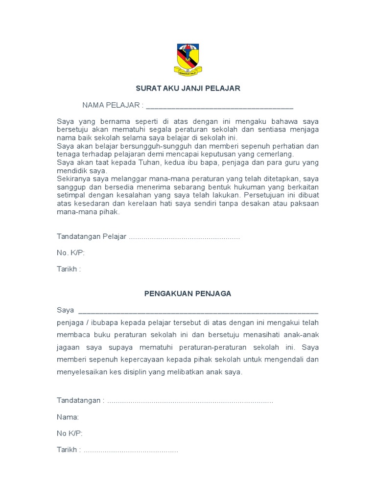 Contoh Surat Aku Janji Pelajar Rayuik